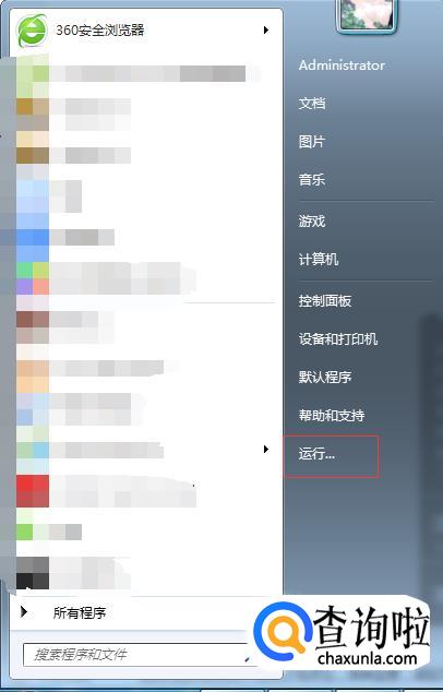 首先打开Windows菜单,找到运行。