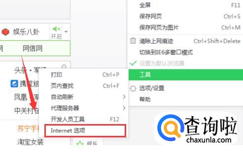 首先打开浏览器,在工具里面找到internet选项。