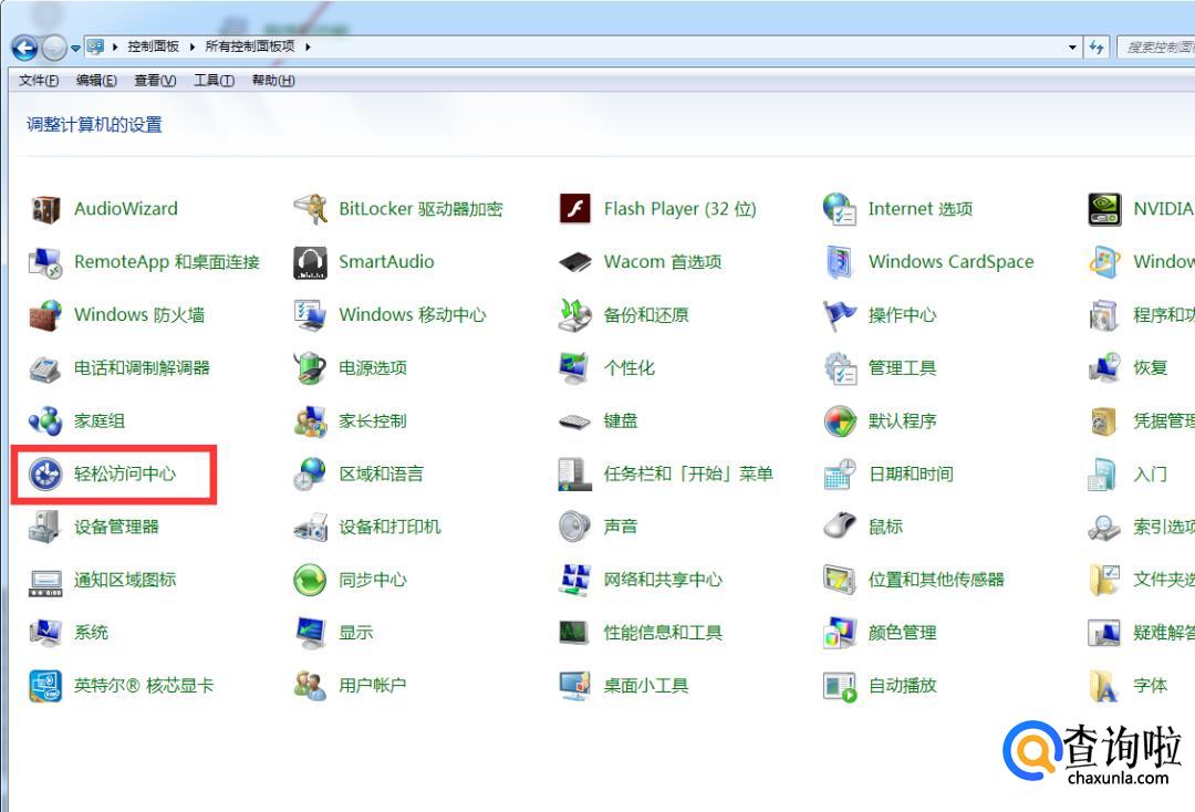 另外可以点开控制面板,在里面找到“轻松访问中心”。