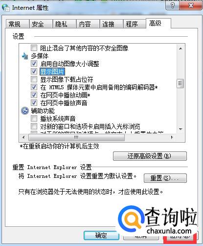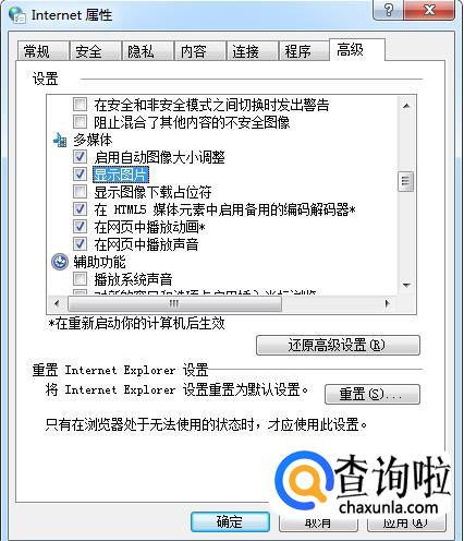 在高级里面找到“显示图片”选项,勾选上“显示图片”。