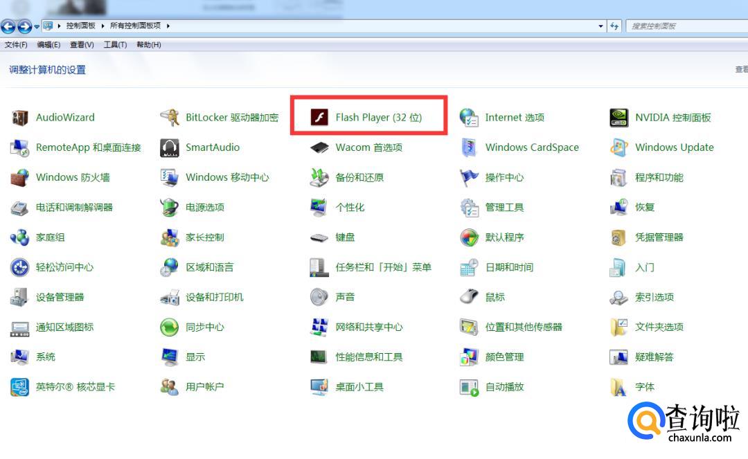 首先在控制面板里面找到flash player。