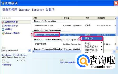 在设置里面点开管理加载项,找到shockwave flash 0bject,选择启用即可。