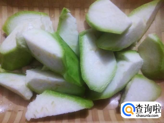 丝瓜去皮,然后切成棱角型小块。