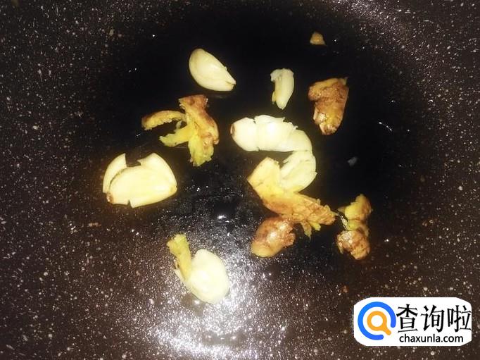 用一个小锅,锅底铺上姜片和蒜米,然后再铺上秀珍菇。