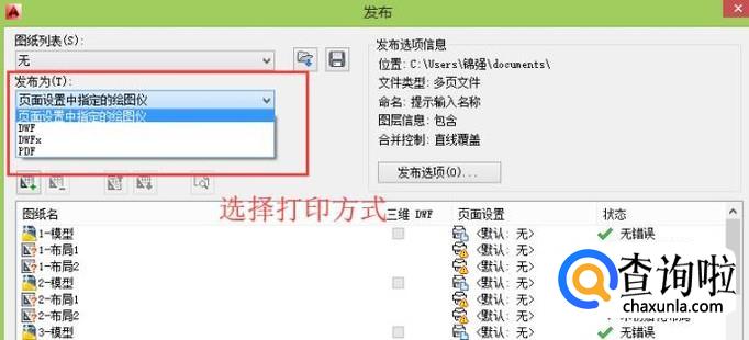 选择打印输出方式,我们这里选择绘图仪,点击发布。