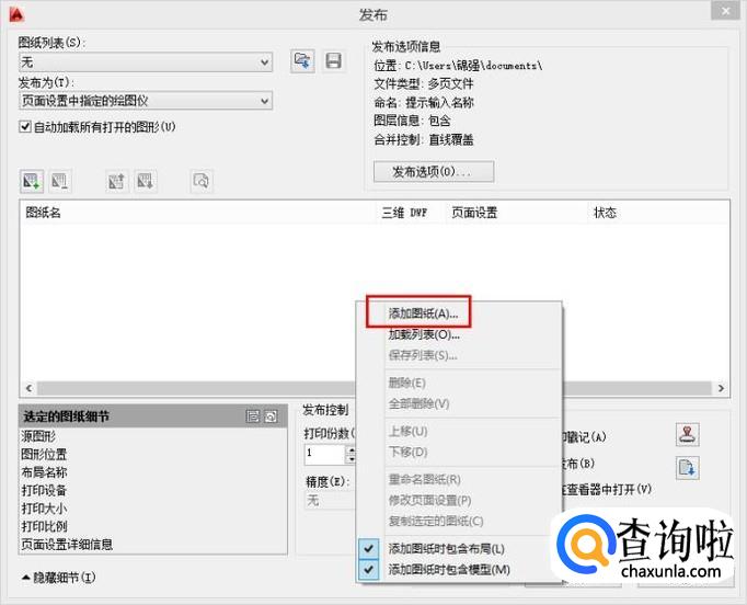 在弹出的界面点击鼠标右键,选择“添加图纸”。
