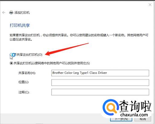 现在可以选择是否共享打印机,点击“下一步”就好了。