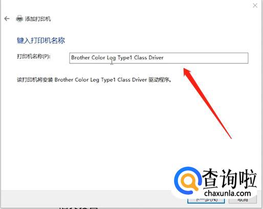 把打印机名称(可采用默认的名称)输入,点击下一步。