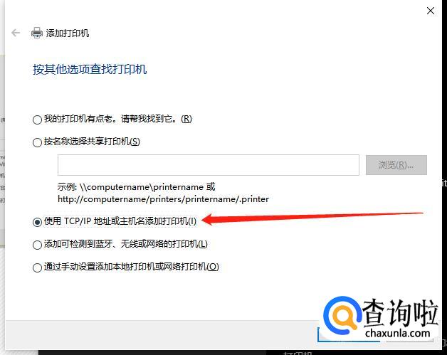 勾选“使用TCP/IP地址或主机名添加打印机”,点击下一步。