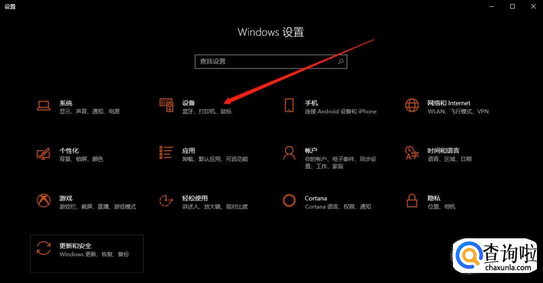 点击电脑左下角“开始”菜单,点击“设备”。