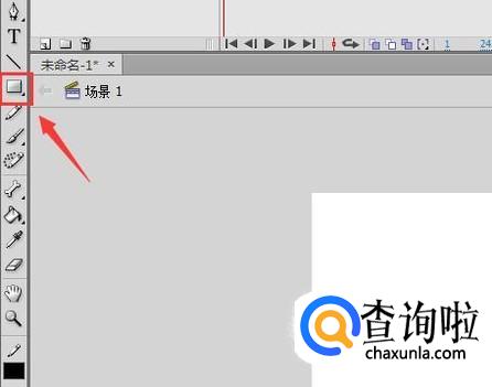 打开flash之后我们在左侧的工具箱内找到矩形工具,如图所示: