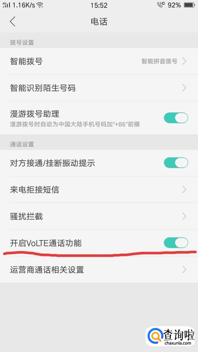 点击“开启volte通话功能”选项进行关闭,关闭后如下图所示。