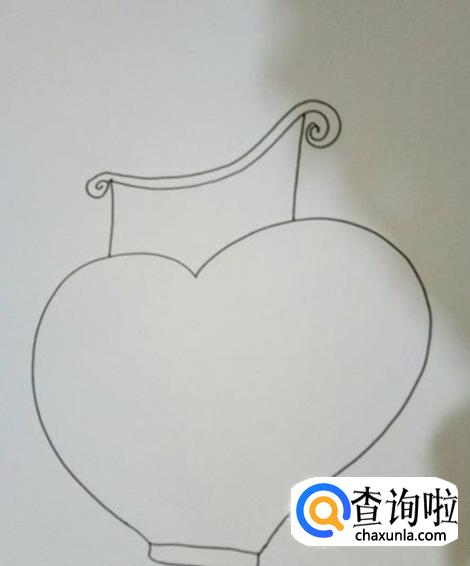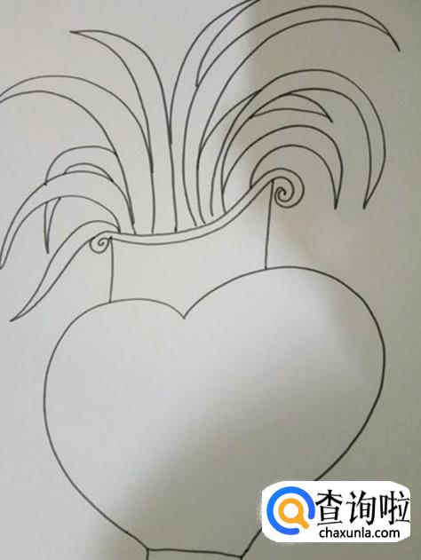 将画纸竖着摆放在面前,再用勾线笔在纸的中下方位置,画上一个大大的爱心形状,这是花瓶的瓶身。