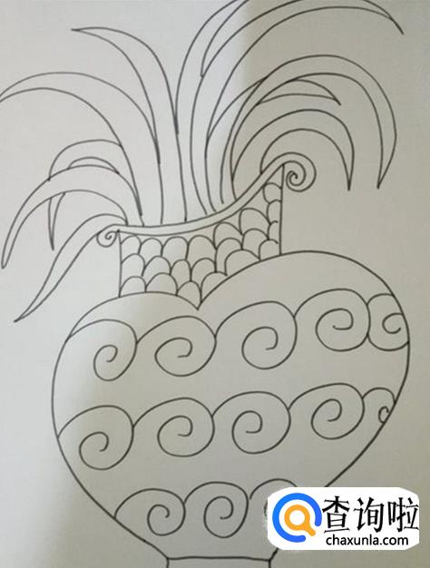 再在瓶身上面,用勾线笔装饰上漂亮的花纹。
