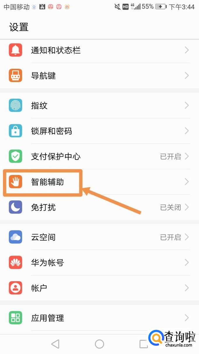 找到设置中的智能辅助,如下图。