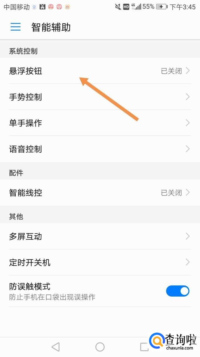 打开智能辅助,第一个就是悬浮按钮,将其打开,如下图。