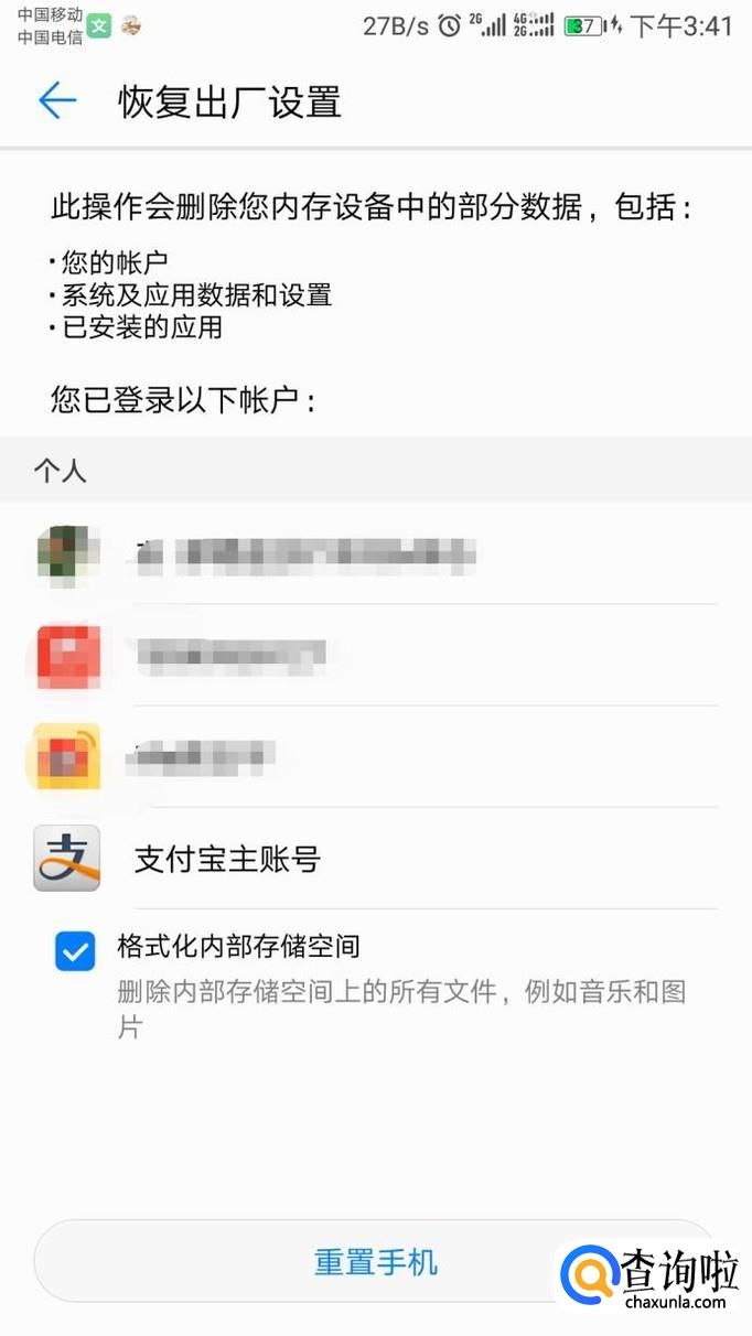 华为手机恢复出厂设置密码