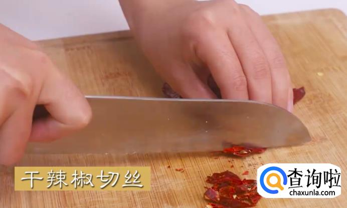 将干辣椒切丝。