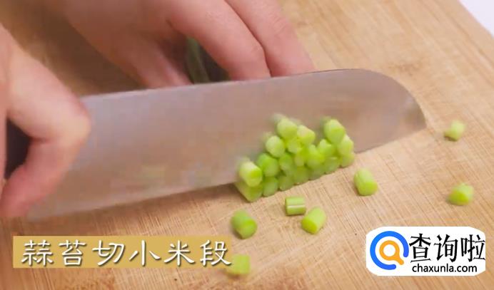 将蒜苔切成小米段。