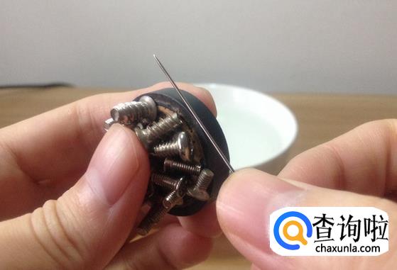 我们把针放在磁铁上面摩擦几下,这样就可以让针上磁了,如下图所示。