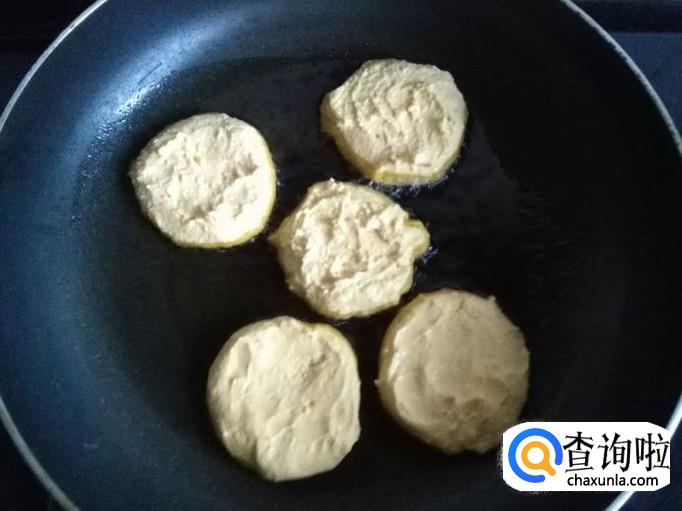 锅烧热,加入少许油,油温四成热时将南瓜饼放入锅中,小火开始煎
