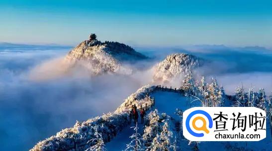 11月峨眉山降初雪,房屋顶、树林间、石阶上,处处薄粉装玉砌,皓然一色。