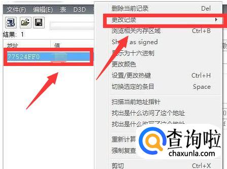 还有一个方法就是用右键点击左边页面蓝色栏处,在弹出的窗口中选择【更改记录】,然后你就可以修改你游戏中需要修改的数据啦。