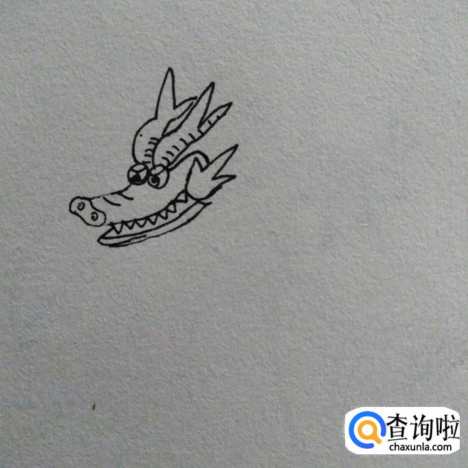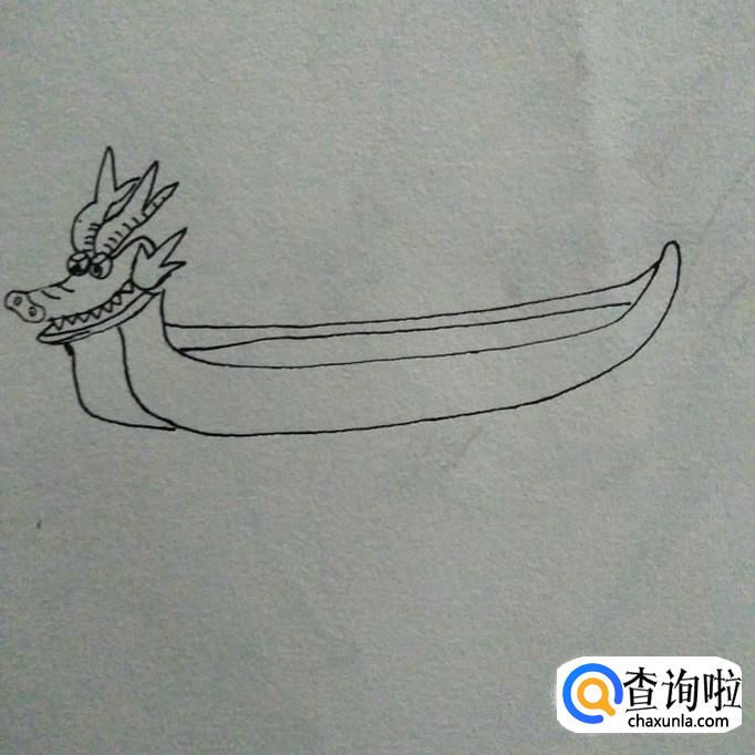 先画两条相对于平行的线作为船身,然后在其上画两条相近的线,在牙齿下方做如下图所示的处理