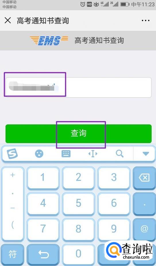 弹出的界面,我们输入准考证号,然后点击查询;