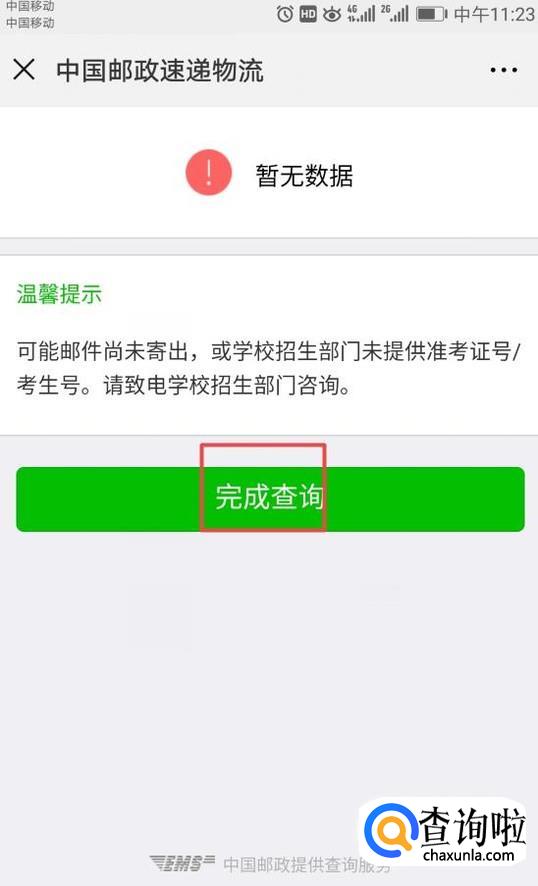 之后就会出现查询结果了。我们点击完成查询,没有结果一般是由于暂未寄出。