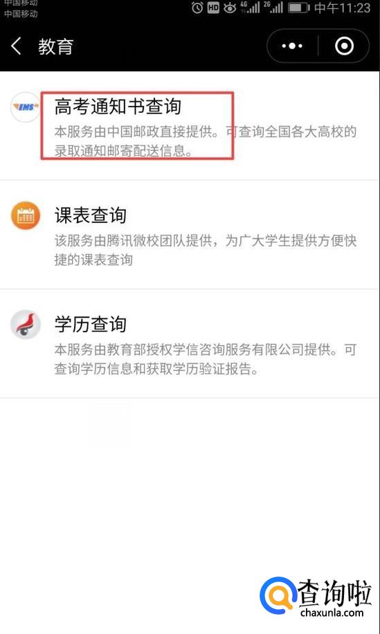 之后我们点击高考通知书查询;