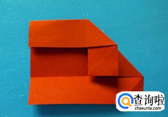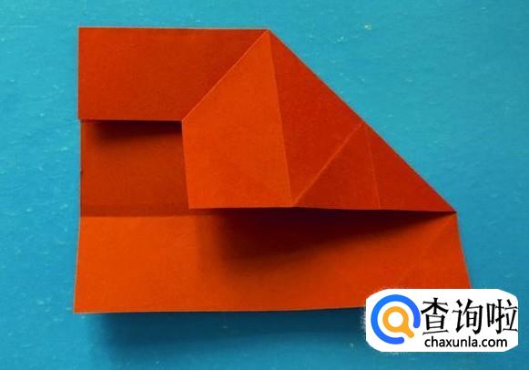将右侧上面按折痕向左压折成下图的样子。