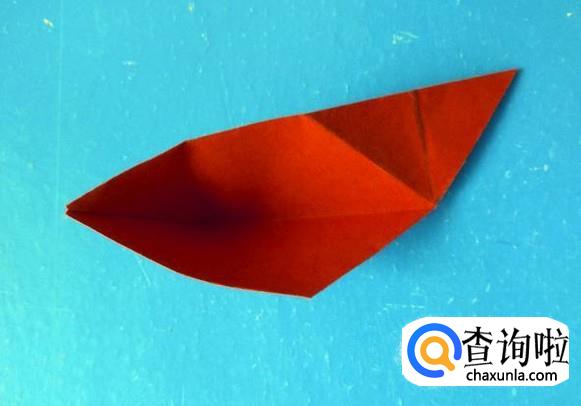 右侧向中心线向下折过来后打开,向上折后再次打开成第三图的样子。