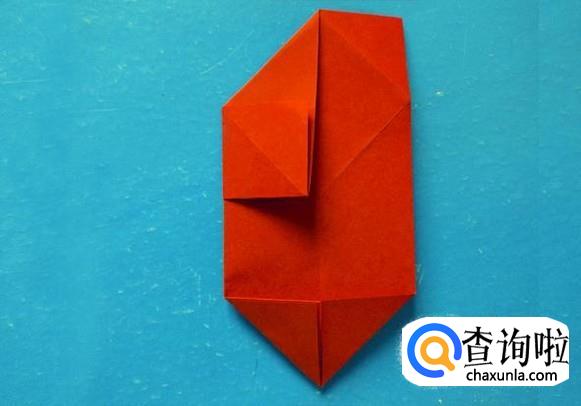 把右侧最上面的部分折进里面,变成如下图的尖角。