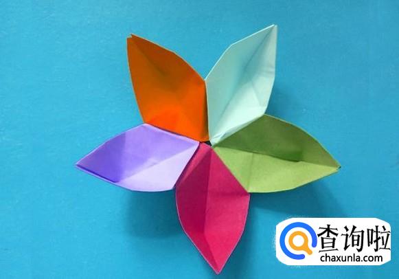 将五个花瓣依次插入缝隙中,五星花就折好了。