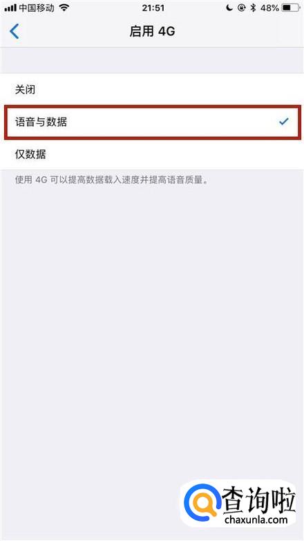 最后勾选语音与数据就可以了。你学会了吗?赶快动手试一试吧。