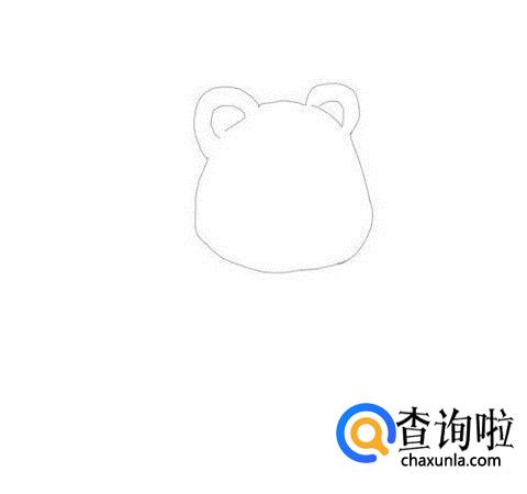 先画出熊猫的头部,在熊猫头部上再画出熊猫的两只耳朵,如图所示: