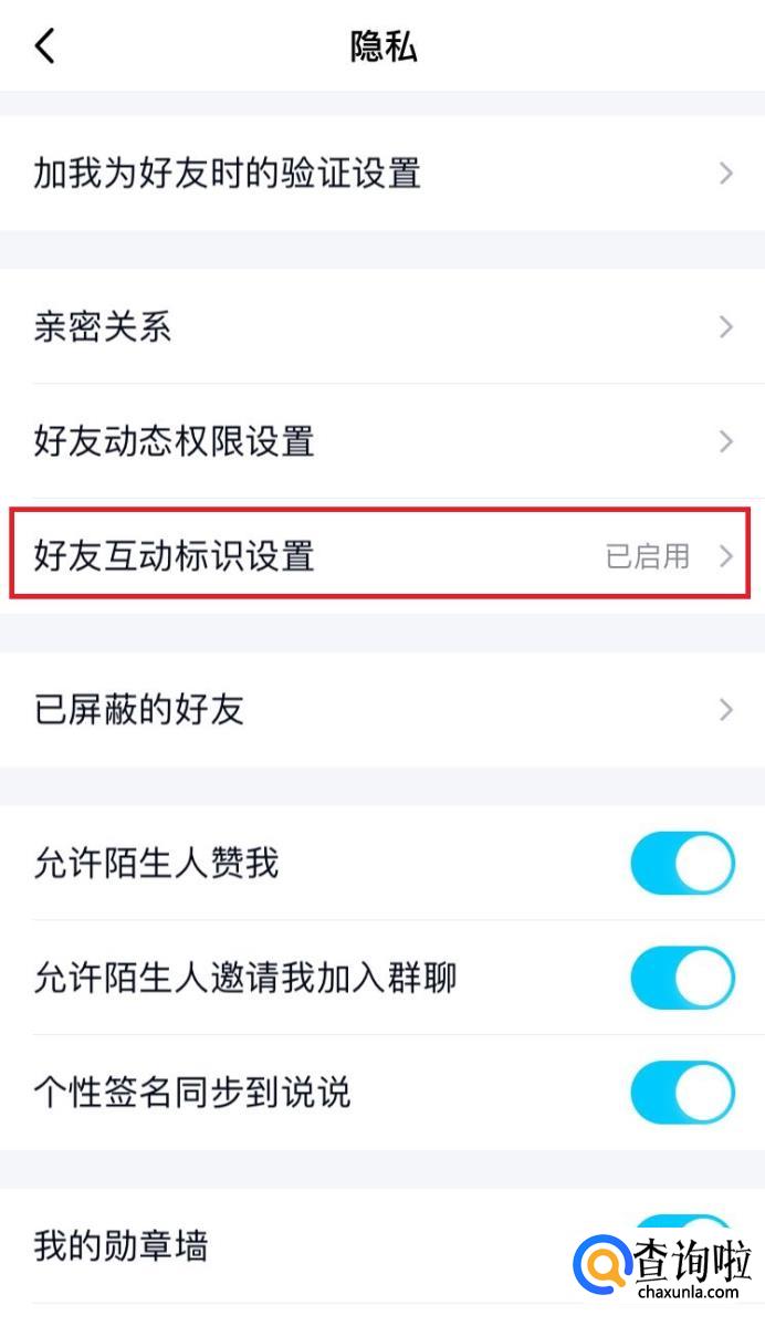 在隐私中找到好友互动标识设置并点击。