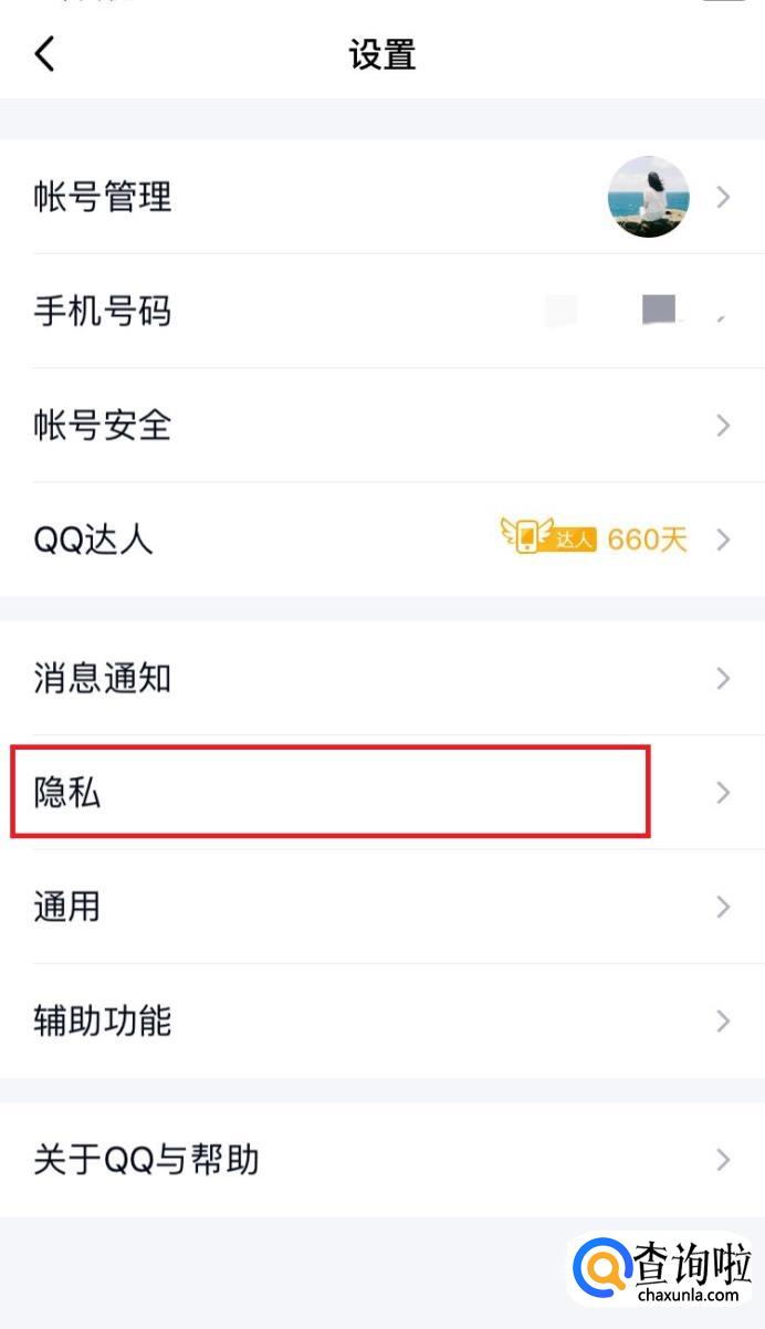 进入设置后,点击“隐私”,如下图所示。