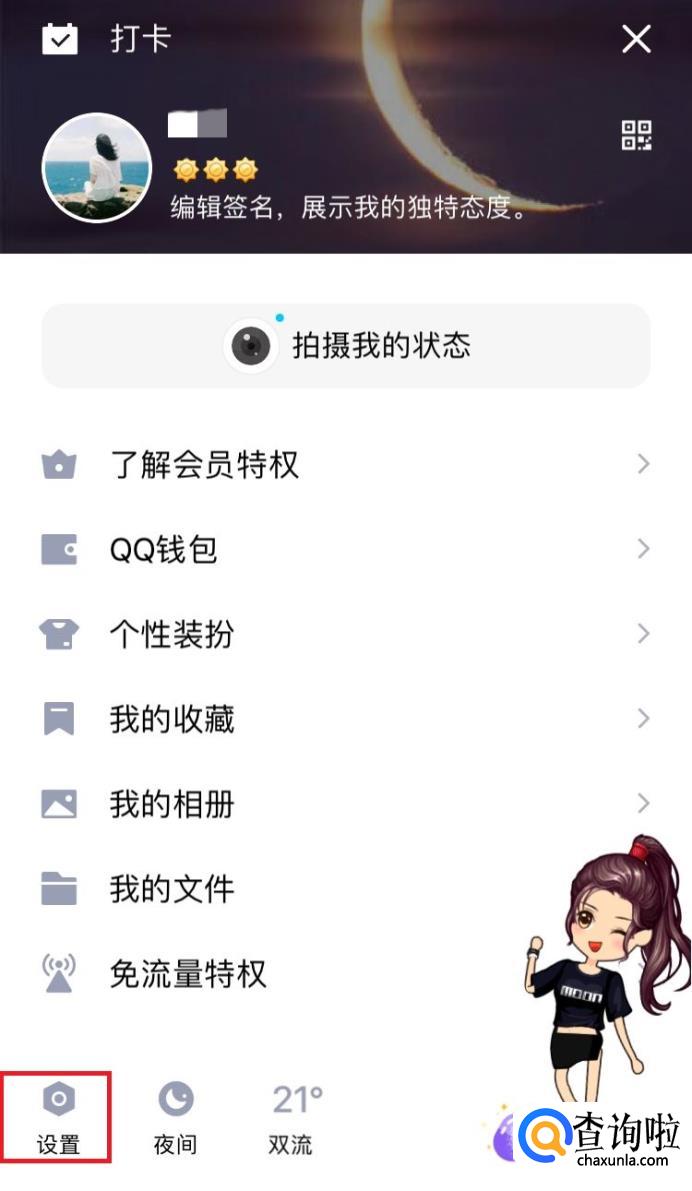 在个人页面中找到左下角“设置”标识并打开。