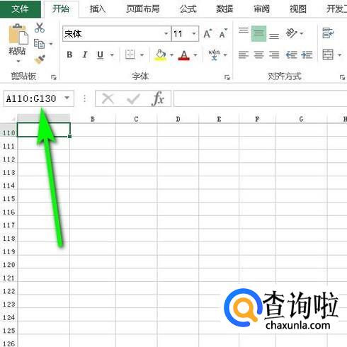 我们可以这样操作,如下图所示,在这名称框中输入A110:G130