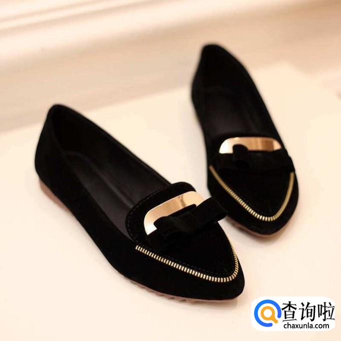 黑色的尖头平底鞋是不错的选择,平底鞋穿起来也很舒服,尖头的款式也能够增强全身搭配的时尚感。