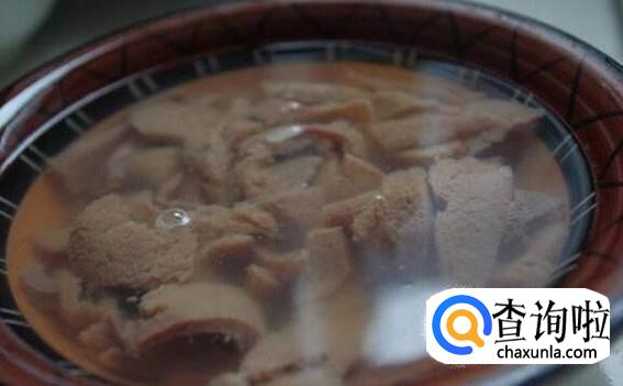 放水里泡。猪肝清洗干净,切成薄片,先放水里泡一会,把血水给泡干净。