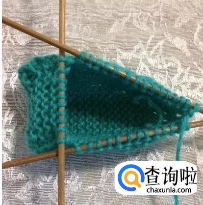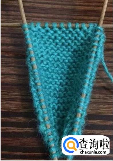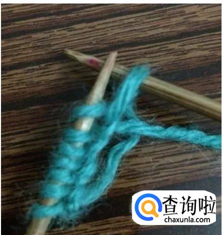 第二行,第一针不织,挑过去,其余都织下针。第三行,同样第一针不织,第二针加一针,织下针,织到最后一针时,再加一针。加针时线圈在右边的针上绕一圈就好。
