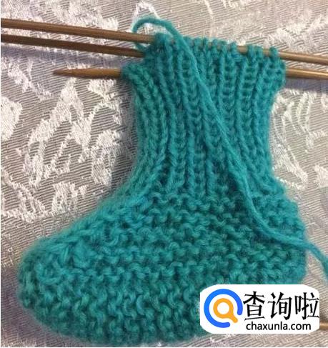 十圈的一排上,一排下织完后,会有一寸长左右了,就开始织鞋筒。