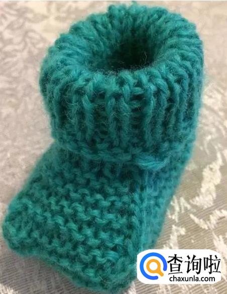鞋筒织上下针 ,织到适合的长度,一般两寸半的长度就可以收针了。收完针,断线,藏好线头。宝宝鞋就针好了。再按照同样方法织另一只鞋。