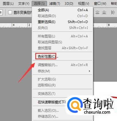 打开图片之后在选择菜单那里找到色彩范围选项,如图所示: