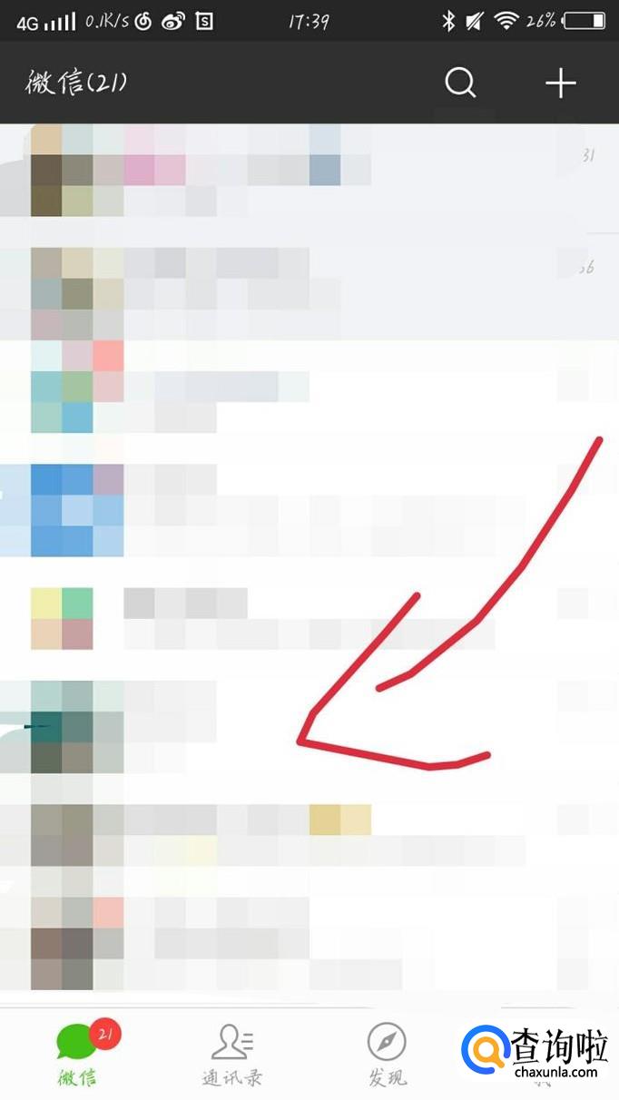 点击一个你想选择的联系人,如图1箭头所示。然后你会进入与联系人的聊天界面,如图2所示。