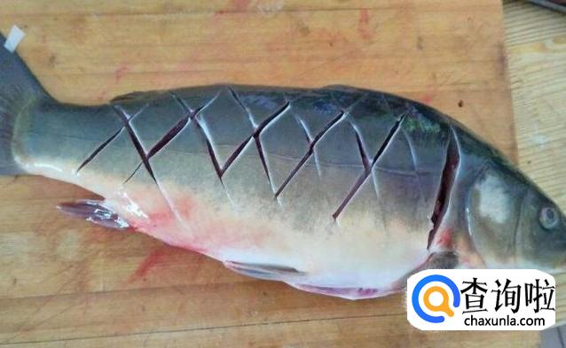 将鲤鱼去鳞、去内脏、去腮,清洗干净,再准备葱、姜、蒜、大料。