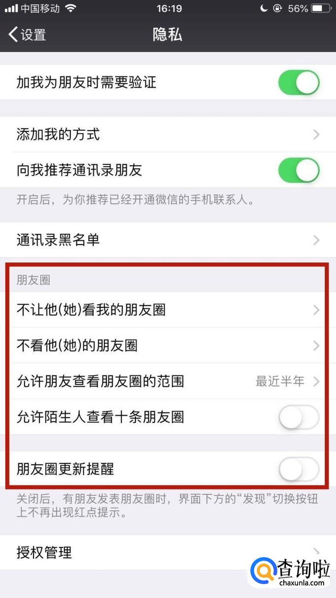你还可以对朋友圈的权限进行设置,也是能够对自己的隐私起到保障作用的。